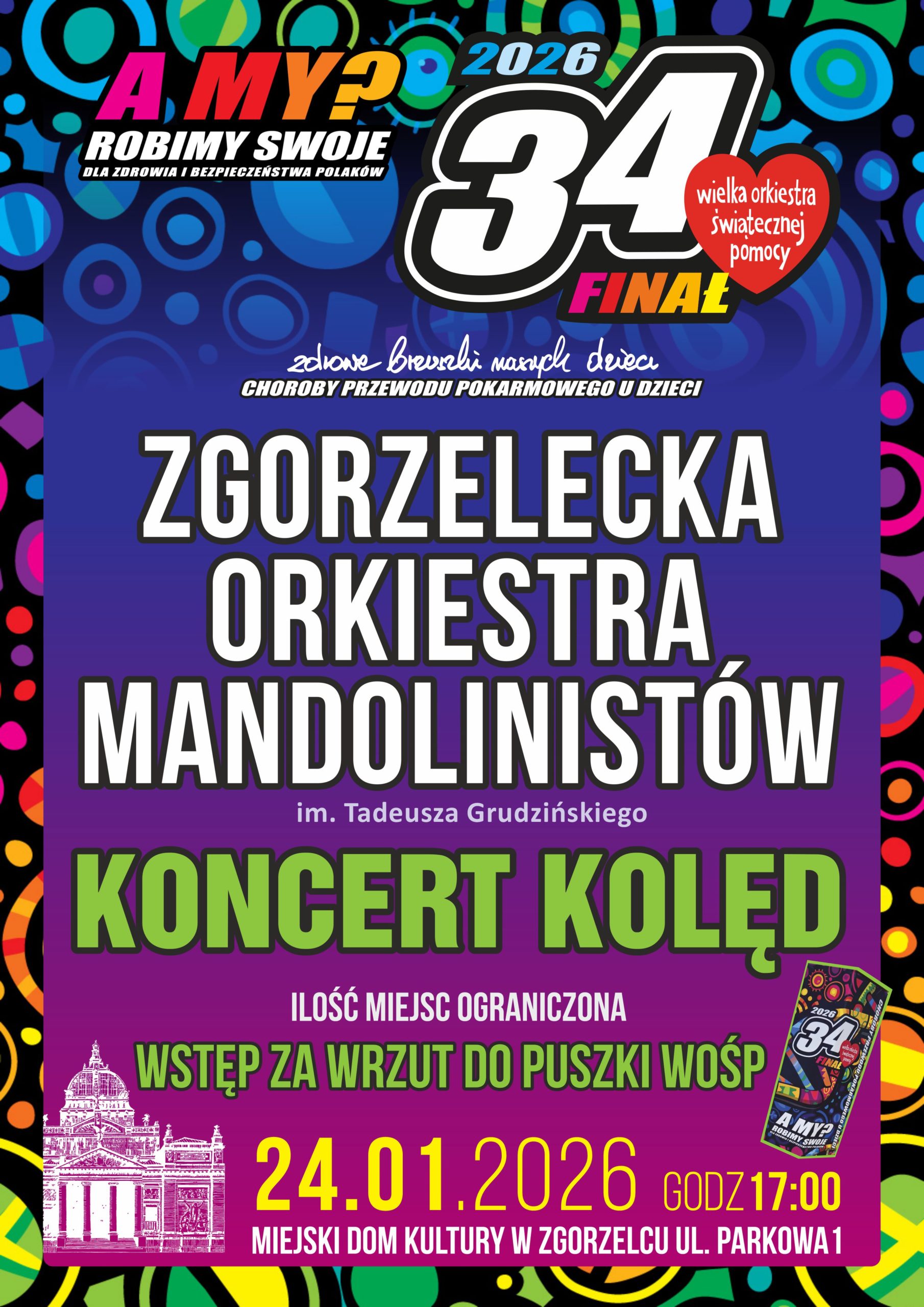 W przeddzień finału, 24 stycznia (sobota) o godzinie 17:00, w Miejskim Domu Kultury w Zgorzelcu odbędzie się wyjątkowy koncert kolęd w wykonaniu Zgorzeleckiej Orkiestry Mandolinistów. Wstęp na wydarzenie jest możliwy za symboliczny wrzut do puszki WOŚP, co pozwala połączyć piękne muzyczne przeżycie z pomocą najmłodszym.