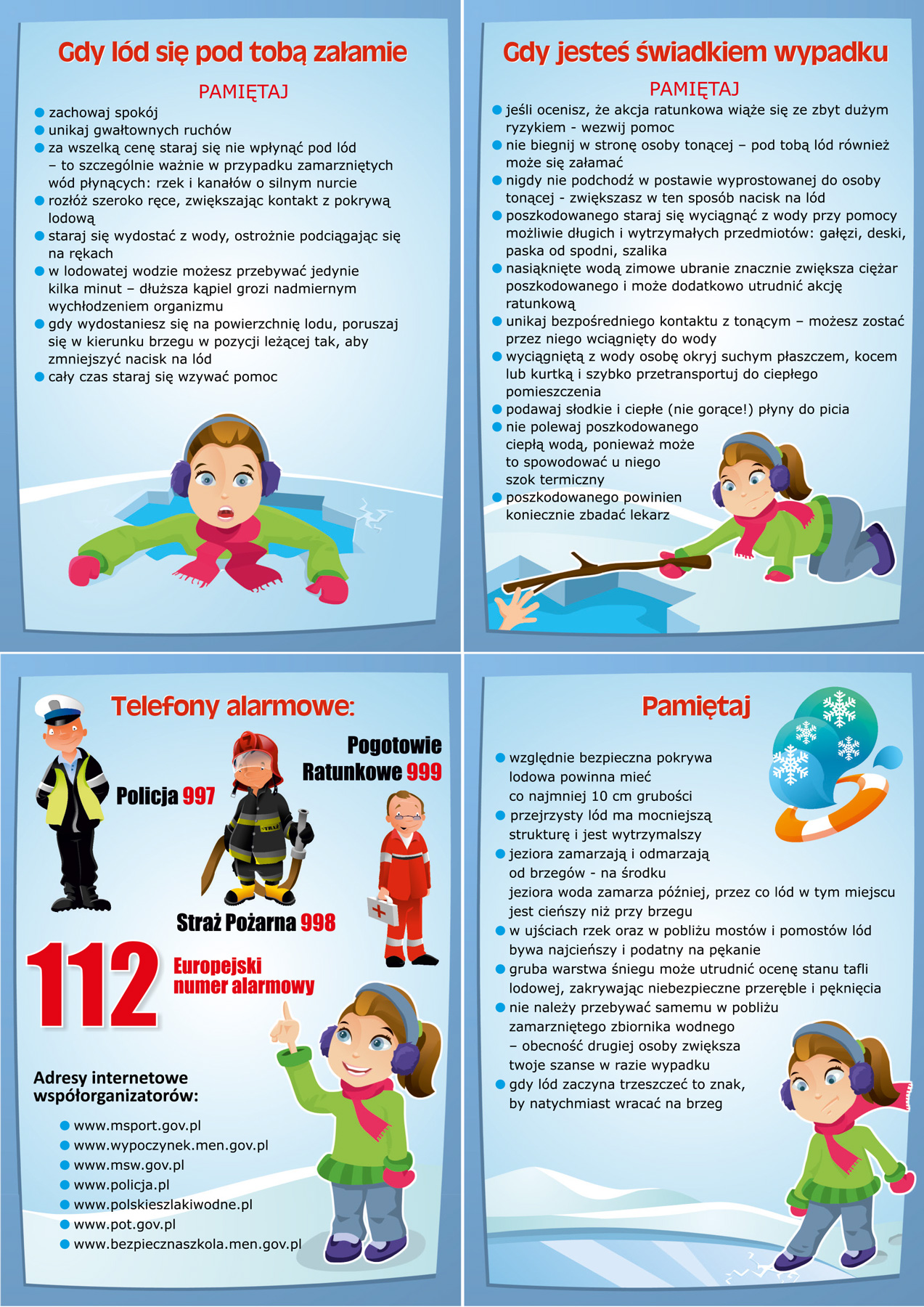 Pragnę podkreślić, że wchodzenie na zamarznięte zbiorniki wodne jest niebezpieczne i niedozwolone. Zabawy, spacery, jazda na łyżwach czy wędkowanie na lodzie mogą zakończyć się tragedią. Wpadnięcie do lodowatej wody grozi szokiem termicznym, szybką utratą sił i przytomności.