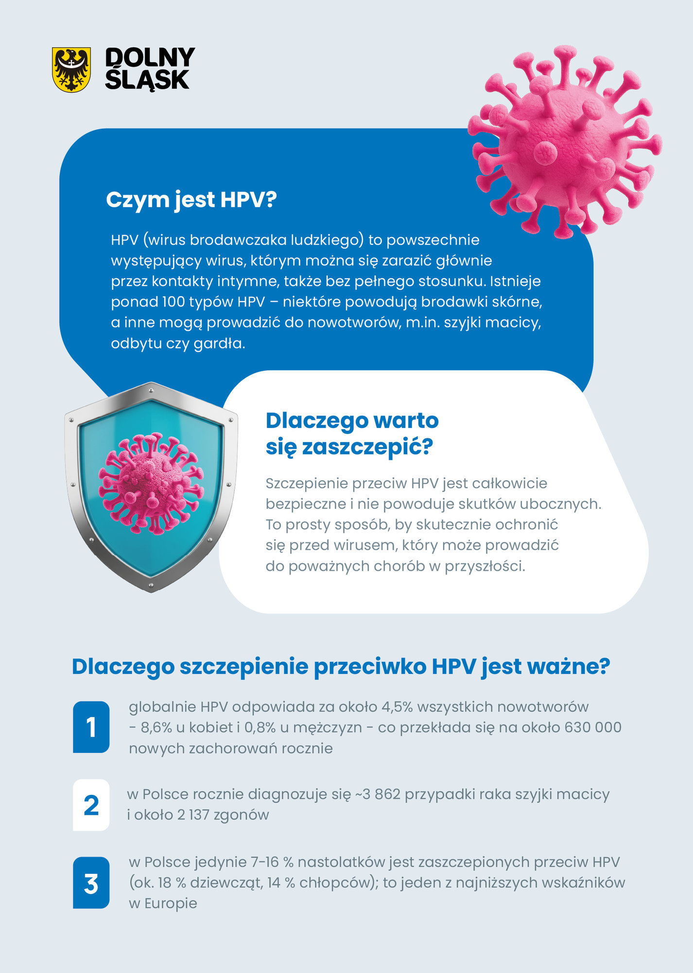 Zdrowie mieszkańców Dolnego Śląska niezmiennie pozostaje jednym z najważniejszych priorytetów Samorządu Województwa Dolnośląskiego. Z tego względu, wychodząc naprzeciw realnym zagrożeniom zdrowotnym, uruchamiamy kolejny istotny program z zakresu profilaktyki zdrowotnej pn. „Program polityki zdrowotnej w zakresie profilaktyki zakażeń wirusem brodawczaka ludzkiego (HPV) dla mieszkańców województwa dolnośląskiego na lata 2025–2027” – mówi Paweł Gancarz Marszałek Województwa Dolnośląskiego.