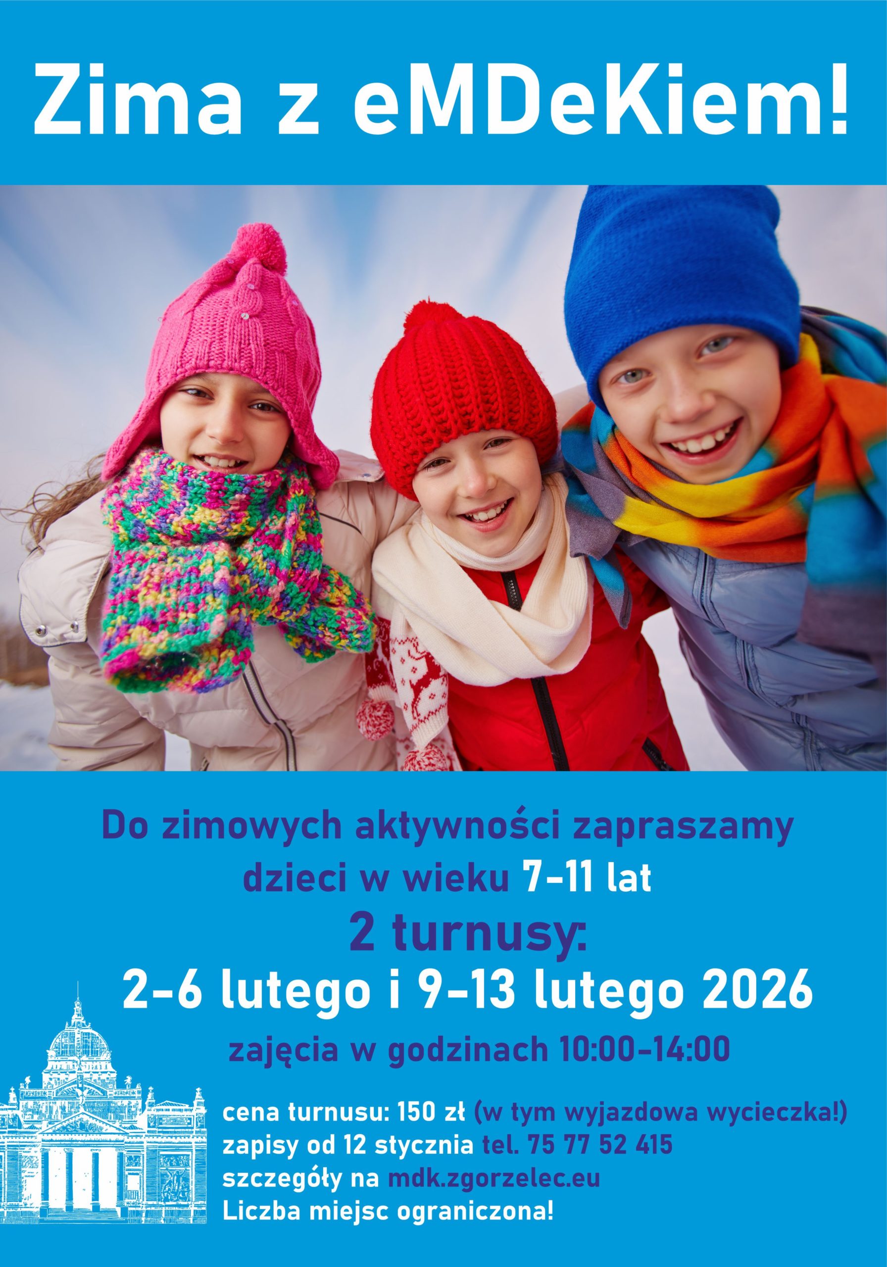 Miejski Dom Kultury zaprasza dzieci w wieku 7 – 11 lat do udziału w akcji „Zima z eMDeKiem”, która odbędzie się w dwóch turnusach: