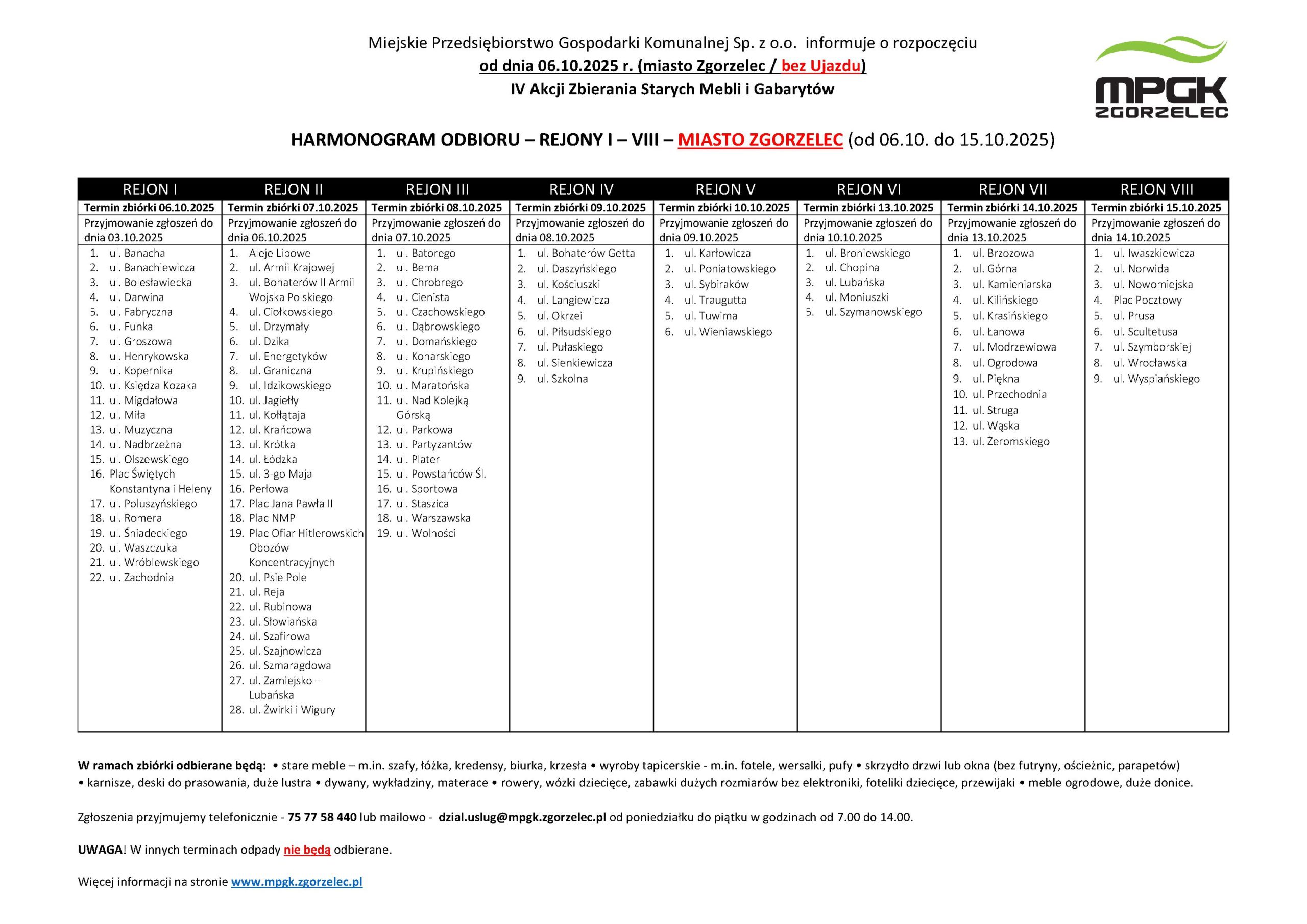 Miejskie Przedsiębiorstwo Gospodarki Komunalnej Sp. z o.o. w Zgorzelcu informuje o rozpoczęciu IV Akcji Zbierania Starych Mebli i Gabarytów!
