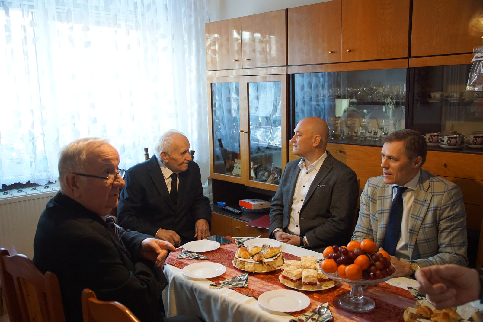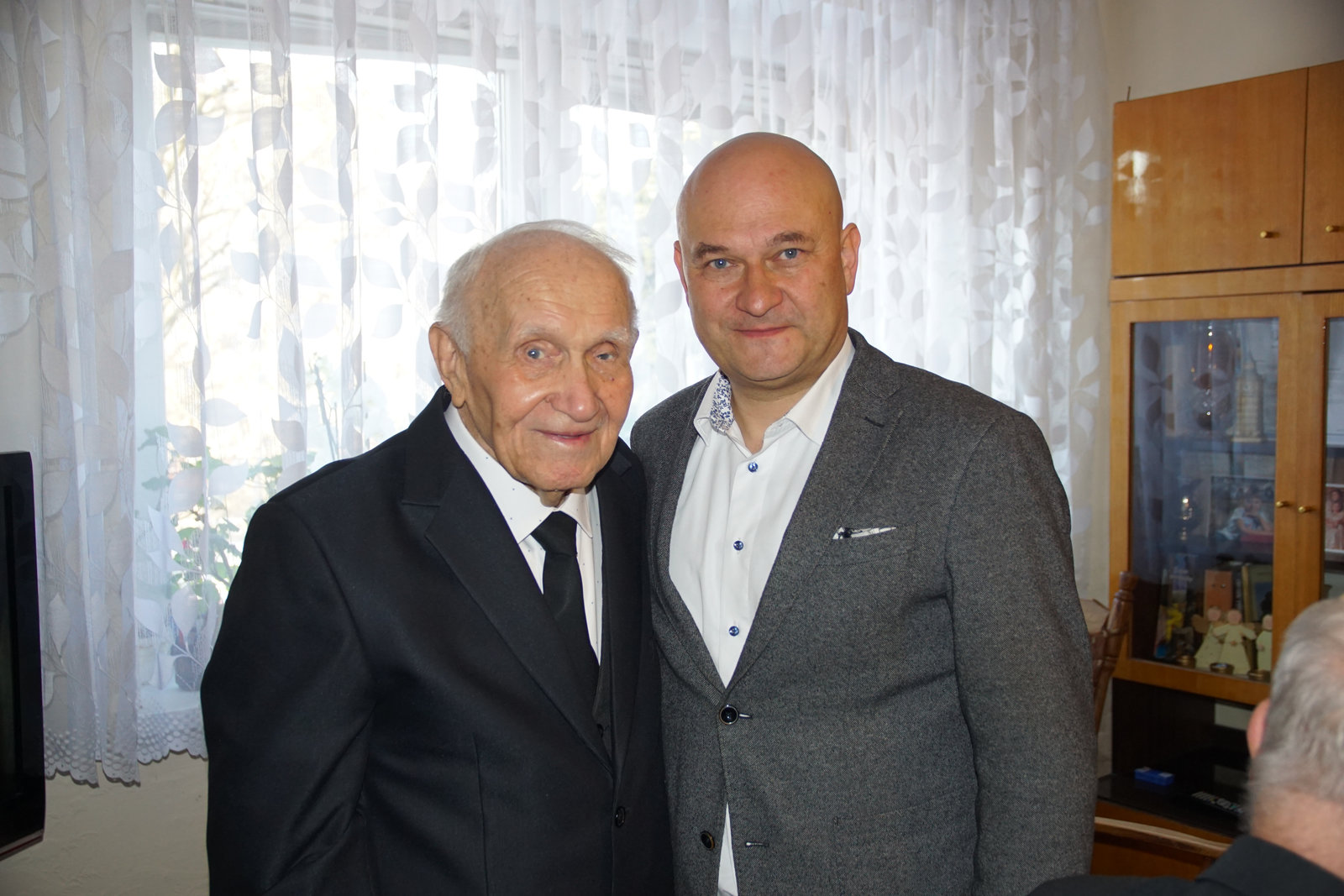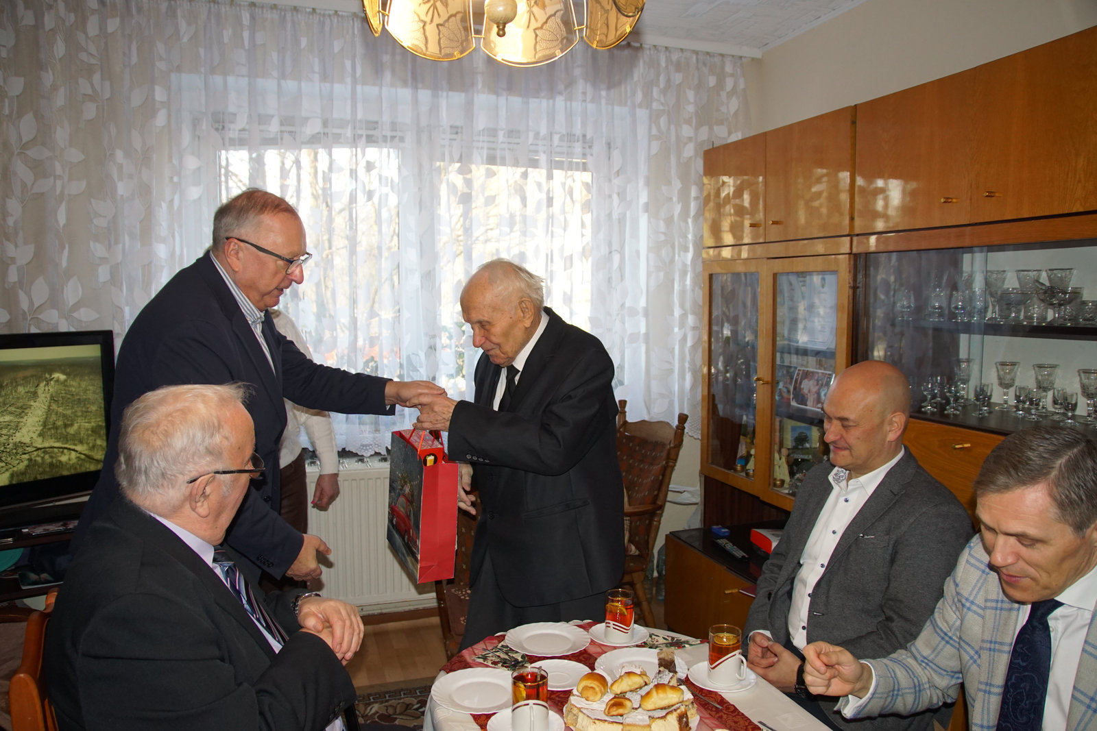 Z Solenizantem spotkał się burmistrz Rafał Gronicz, który złożył Panu Józefowi życzenia zdrowia, pogody ducha, spokoju i radości na dalsze lata życia oraz wręczył bukiet kwiatów i kosz upominkowy.