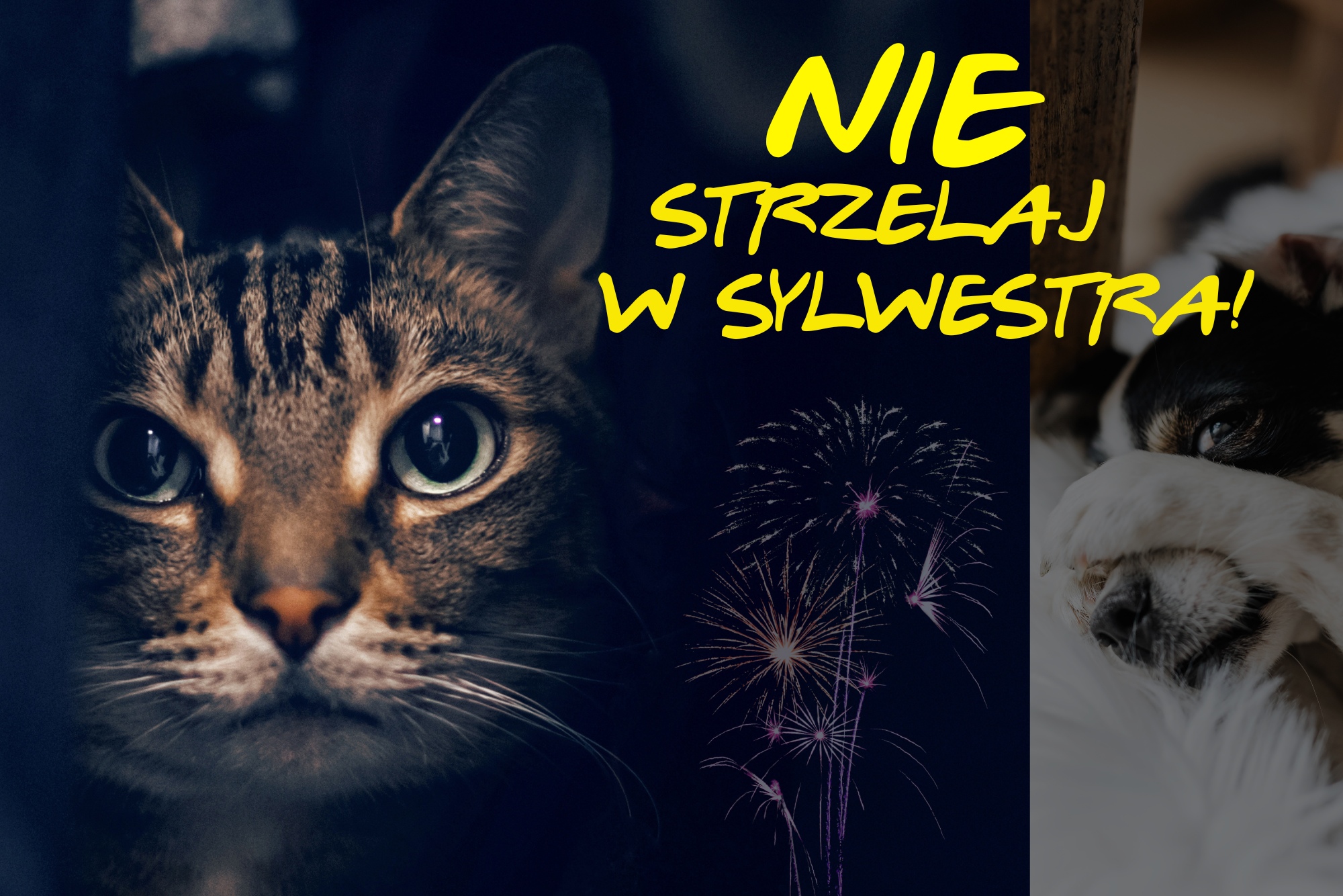 Podczas gdy my szykujemy się do Sylwestrowej zabawy, dla zwierząt to jedna z najbardziej przerażających nocy w roku. Głośne wystrzały fajerwerków wywołują u nich ogromny stres, panikę i dezorientację. Psy i koty uciekają w popłochu z domów, zrywają się ze smyczy, giną pod kołami samochodów lub przez wiele dni błąkają się, nie mogąc odnaleźć drogi powrotnej. Dzikie zwierzęta i ptaki, spłoszone nagłym hałasem, umierają z wycieńczenia lub w wyniku wypadków.