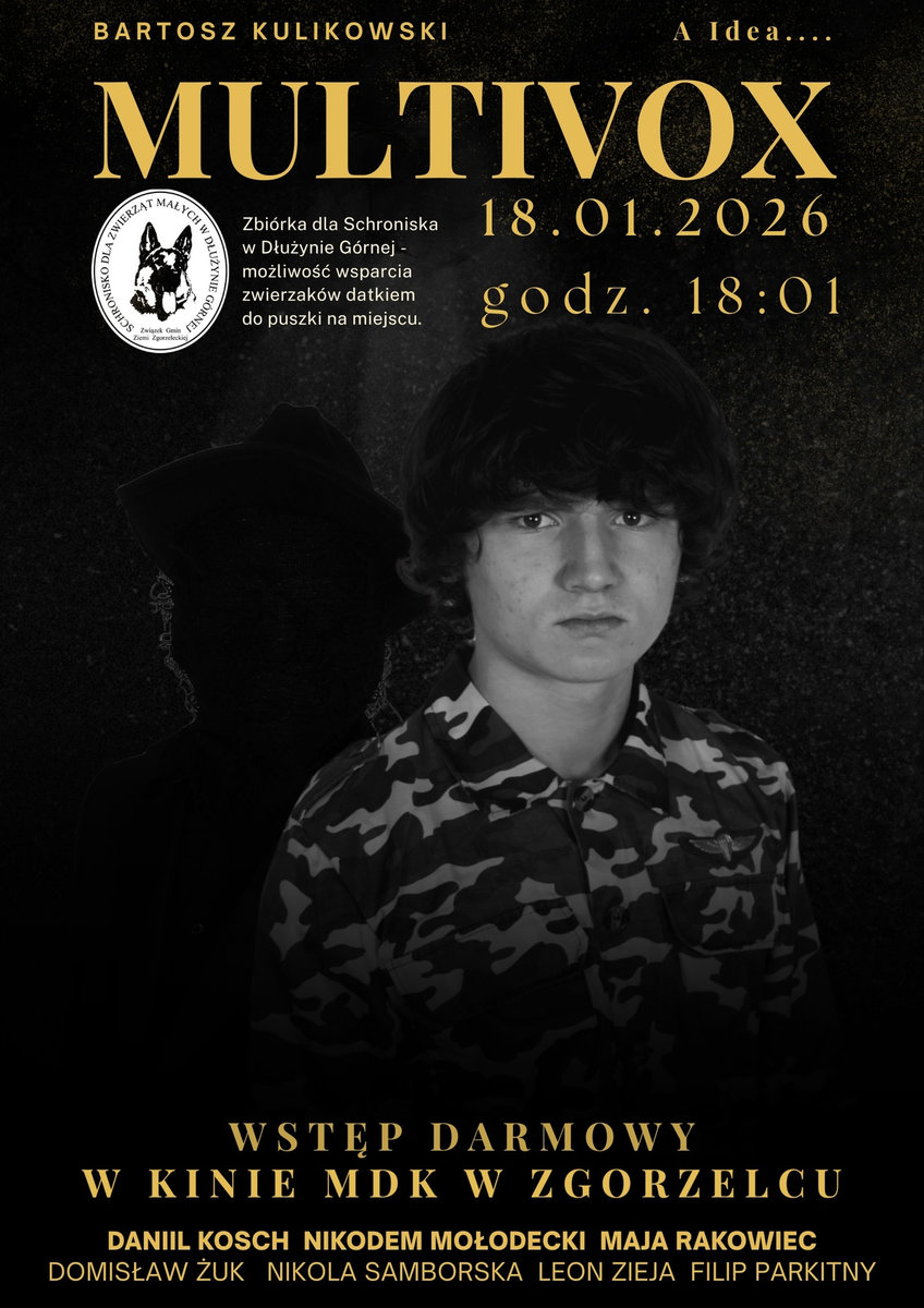 W niedzielę 18 stycznia o godz. 18:01 w kinie PoZa NoVa (Miejski Dom Kultury w Zgorzelcu) odbędzie się premiera filmu „Multivox” – wyjątkowego projektu stworzonego przez grupę młodych, zaangażowanych filmowców ze Zgorzelca.