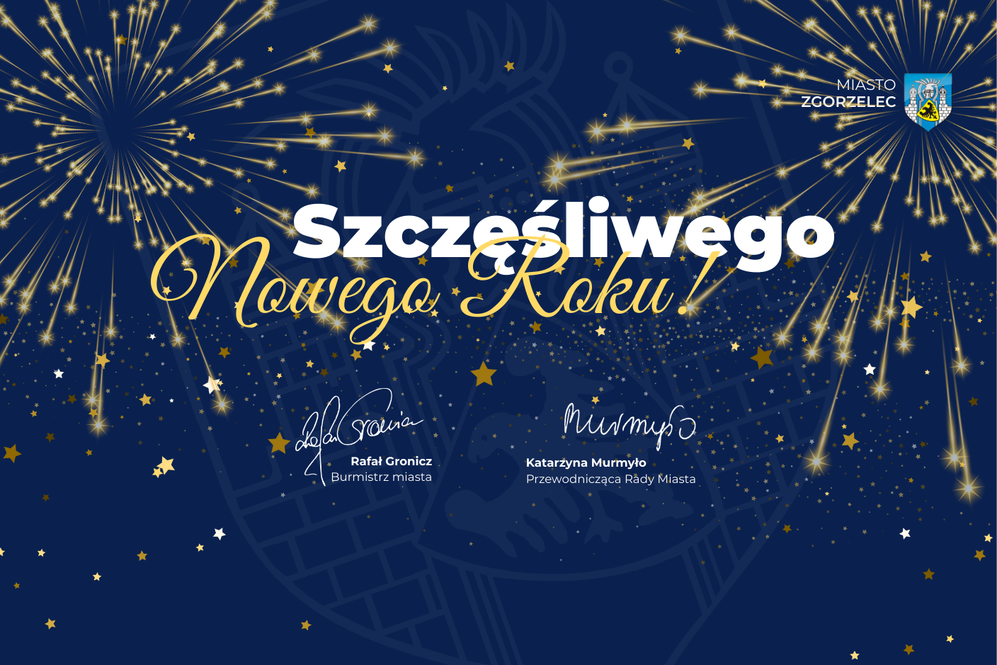 Z okazji Nowego Roku składamy wszystkim Mieszkańcom Zgorzelca serdeczne życzenia zdrowia, pomyślności oraz wielu radosnych chwil. Niech nadchodzący rok przyniesie spełnienie planów, sukcesy w życiu osobistym i zawodowym oraz poczucie bezpieczeństwa. Życzymy wszystkim wzajemnej życzliwości, spokoju i harmonii w codziennym życiu.