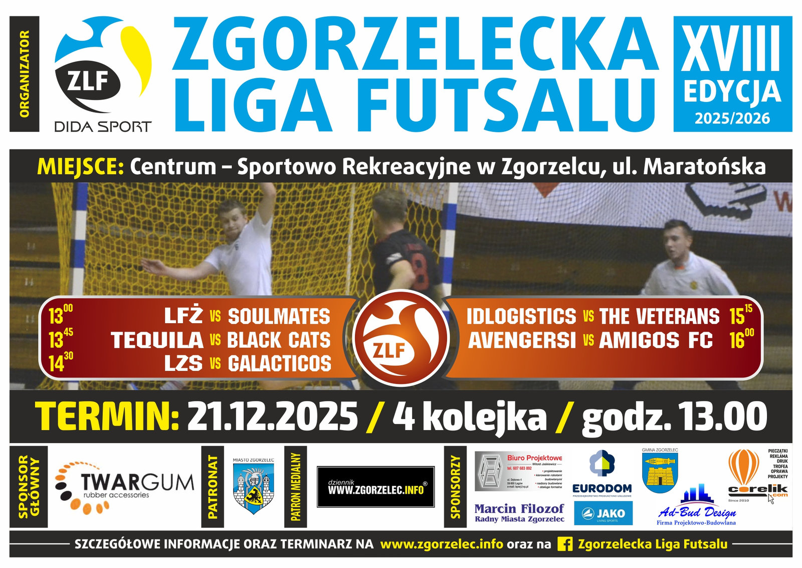 Informacje dotyczące XVIII edycji ZLF dostępne na www.zgorzelec.info oraz na FB Zgorzelecka Liga Futsalu, gdzie obejrzycie również galerię i bramki ze spotkań.