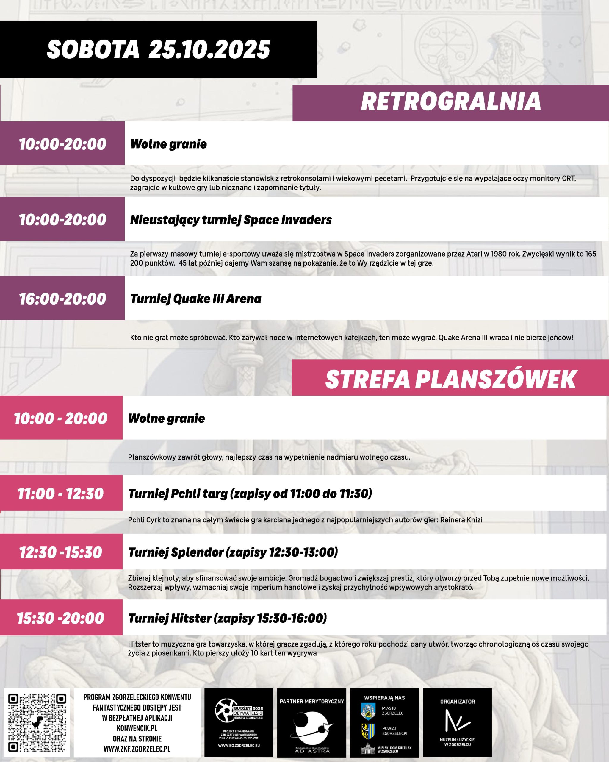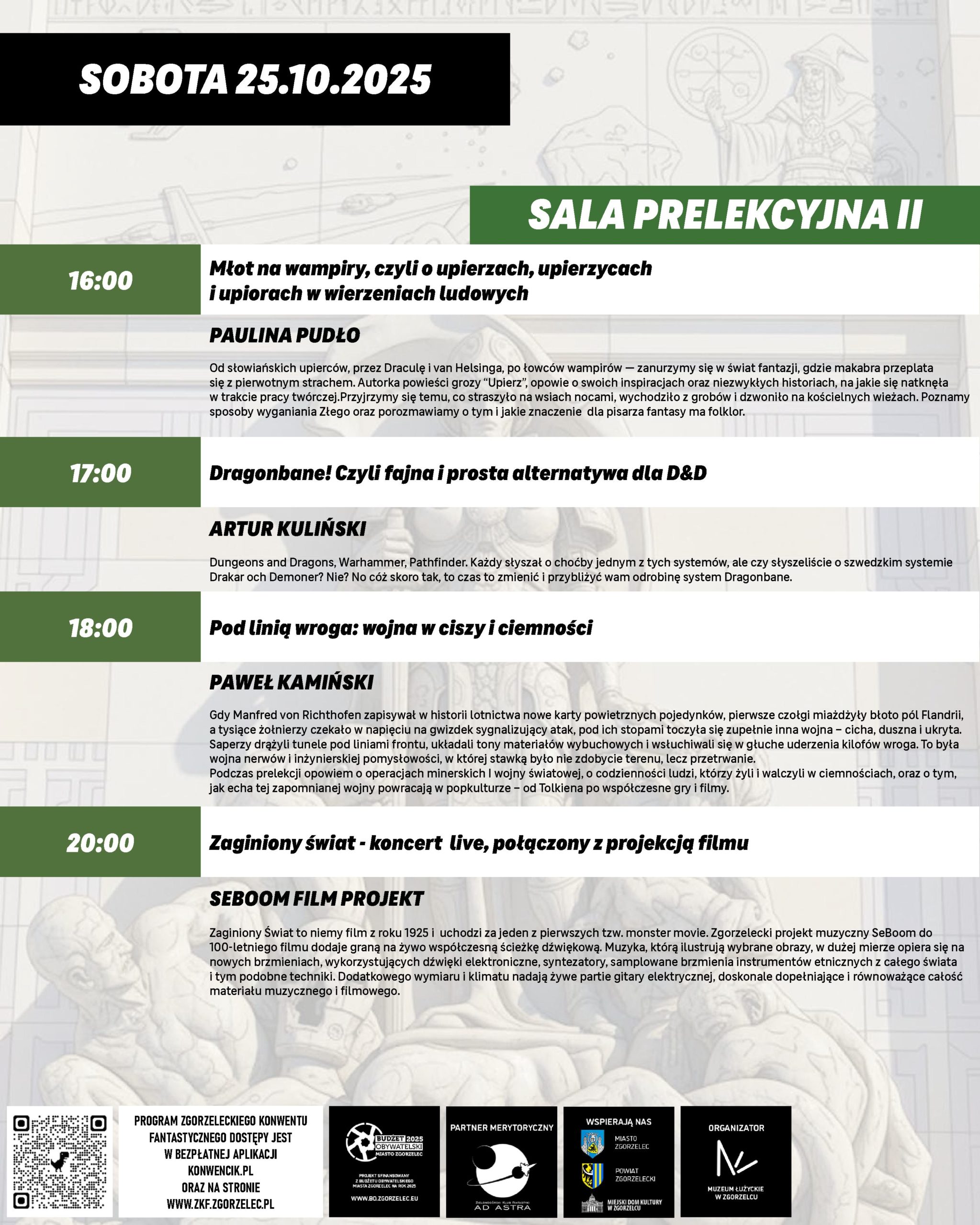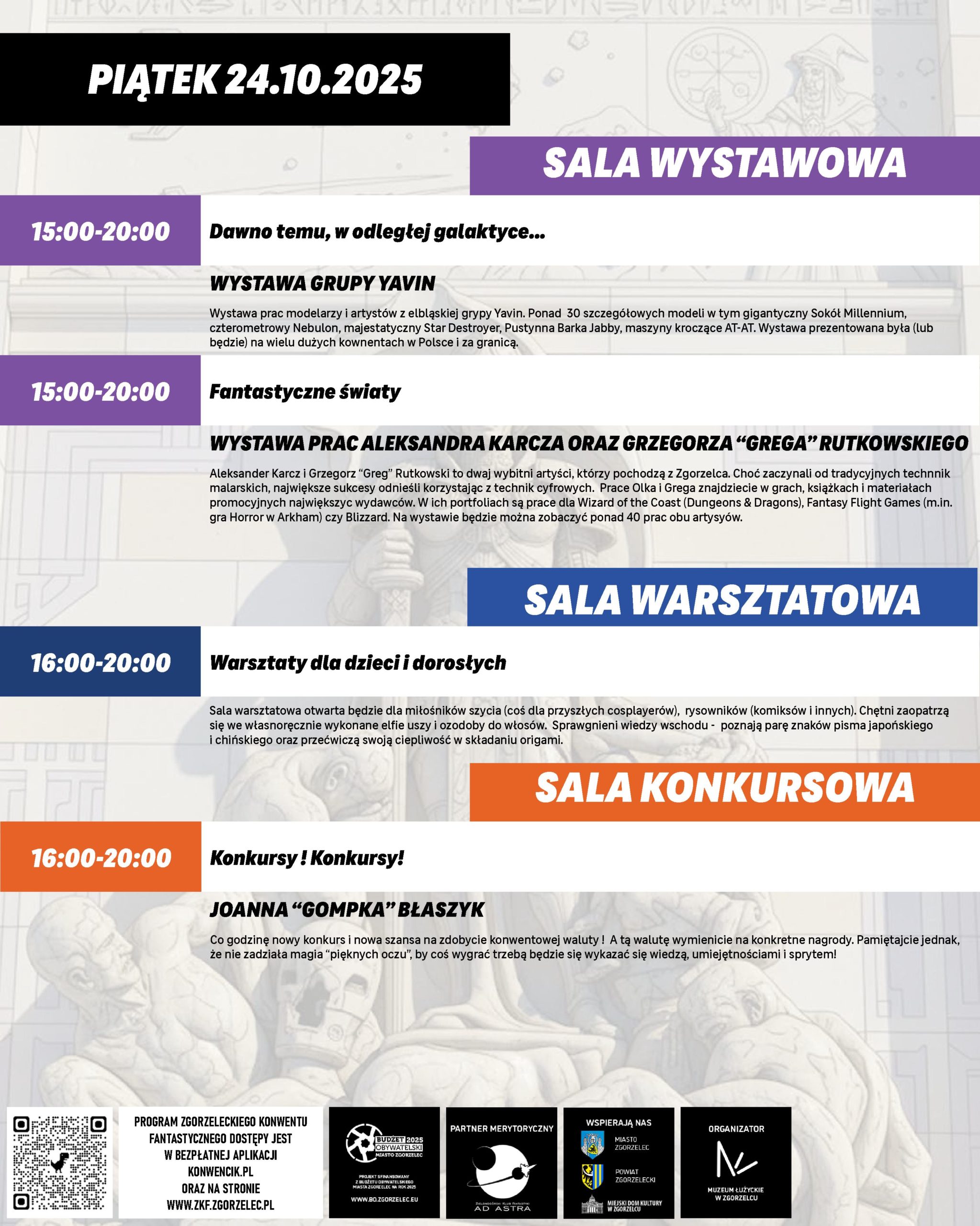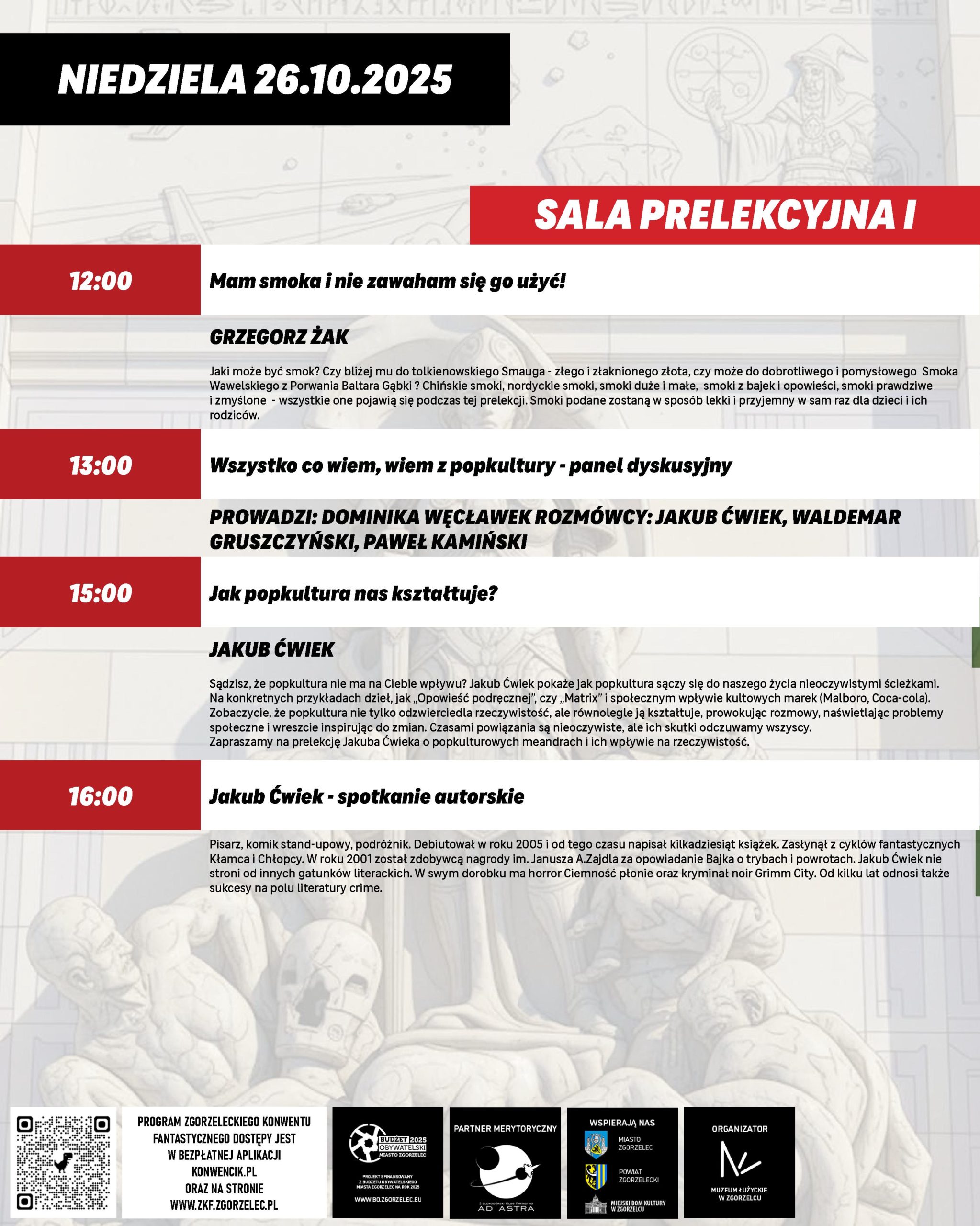 Zgorzelec centrum fantastycznych wydarzeń! W dniach 24 – 26 października 2025r. na miłośników fantastyki, gier, cosplayu itp. czeka prawdziwa uczta. Pierwsza edycja Zgorzeleckiego Konwentu Fantastycznego – projektu, który powstał z inicjatywy mieszkańców i zwyciężył w Zgorzeleckim Budżecie Obywatelskim 2025.