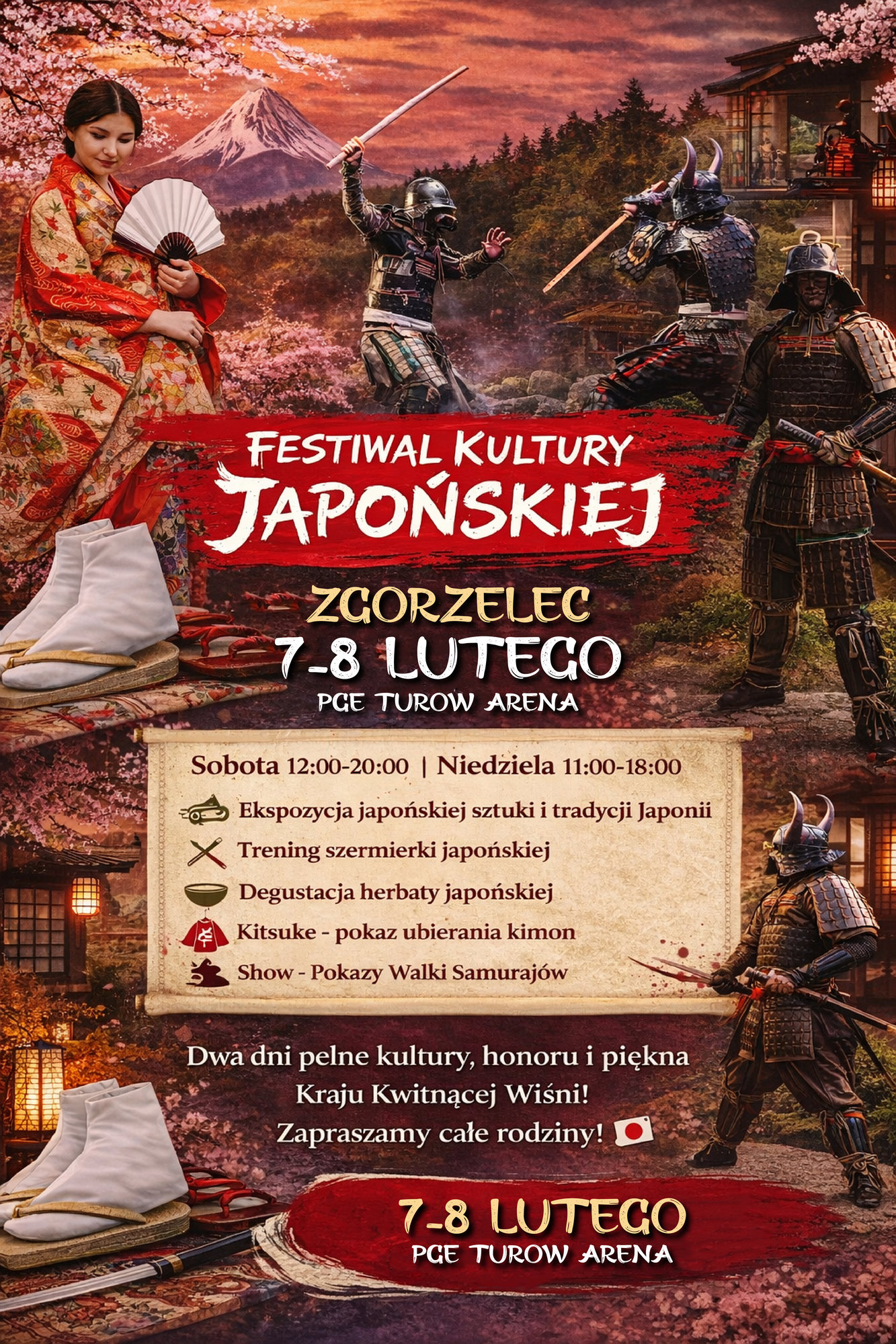 Zapraszamy na wyjątkowy, dwudniowy festiwal, który połączy kulturę Japonii, orientalne smaki Azji oraz najlepsze słodkości z całego świata. PGE Turów Arena zamieni się w tętniącą życiem przestrzeń pełną aromatów, kolorów, tradycji i atrakcji dla całych rodzin.